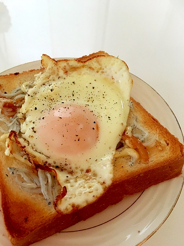 中華くらげと目玉焼きのしらすトースト レシピ 作り方 By とっこ 楽天レシピ